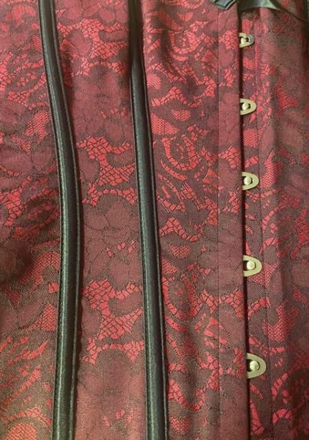 2.  > クラシカル♪牡丹のお花が織込まれたワインレッドにブラック黒トリム&リボンオーバーバストコルセットS~XL