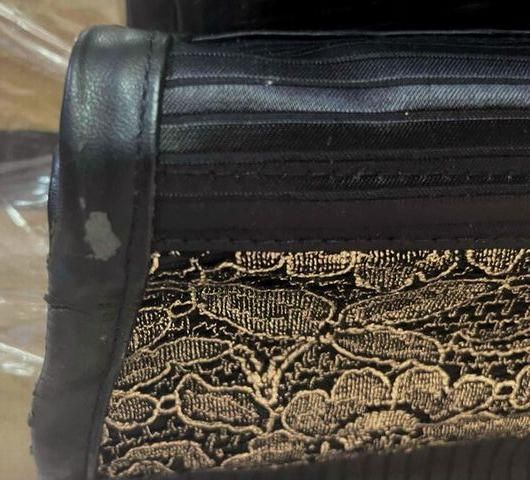 合皮と柄生地コンビネーションな為、合皮素材部分の革の割れがございますが、個々に箇所が異なります。