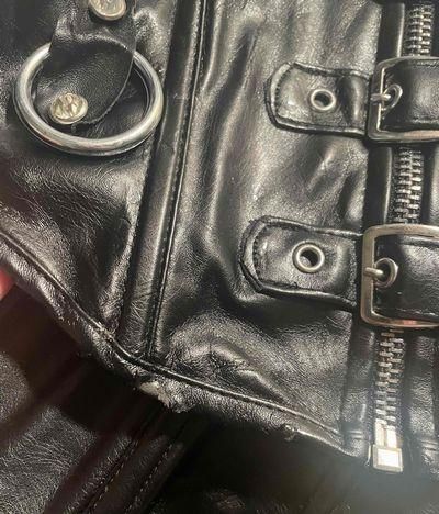 ・前をジッパーで開け閉めするので、着脱も簡単で、6個のバックル飾りがクールです。